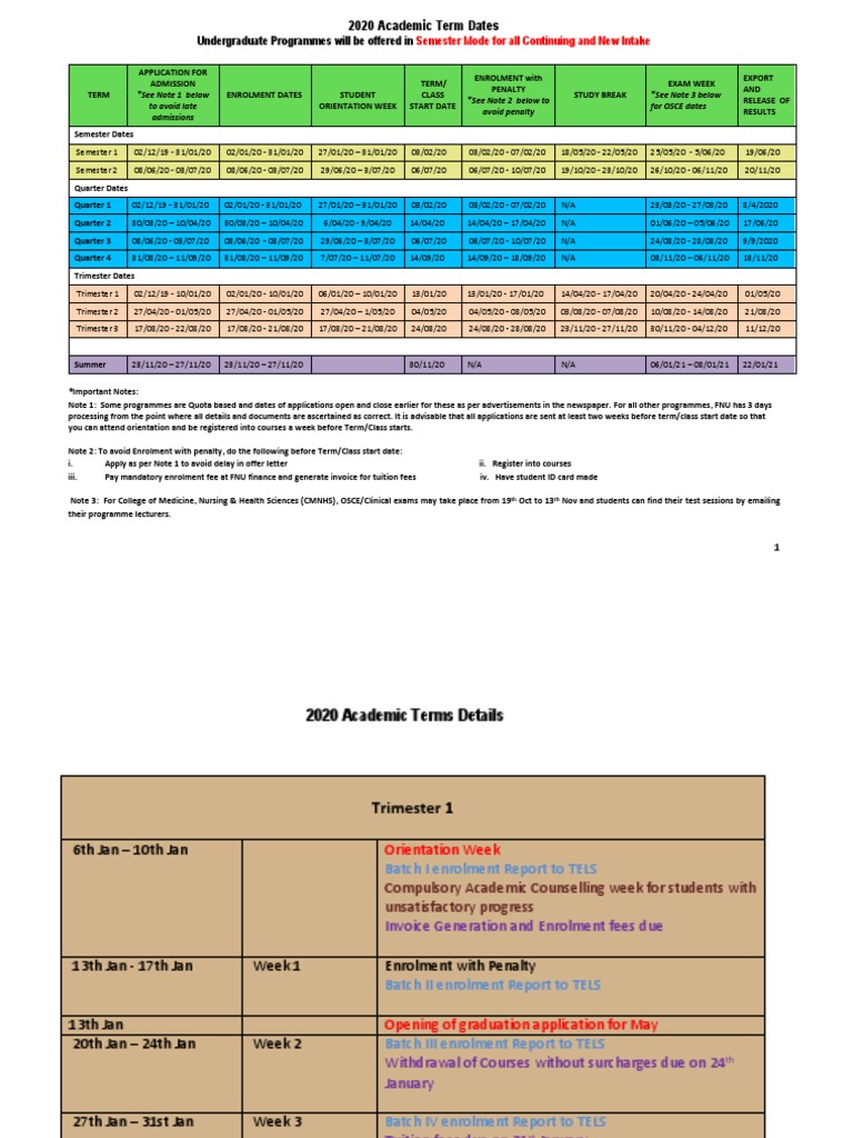 2020 Fnu Academic Calendar 31 10 2019 Pdf Academic Term Academia